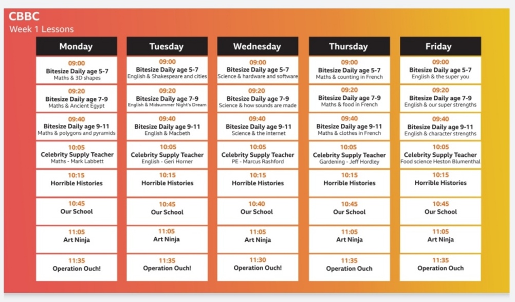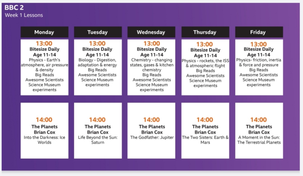 Starting this week, as well as more BBC bitesize lessons online there will be more on BBC TV: