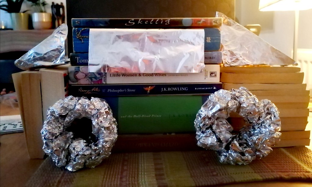 Or is your machine made of bits of old toys and a scooter? Or a library car like mine… Made of books and tinfoil?